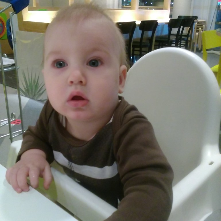 Ещё ходили недавно в икею. Парень несколько обалдел от того, куда он попал. Пошли там на площадку, ребенок несколько с опаской изучал игрушки и крутил те штуки. Постоянно возвращался ко мне.