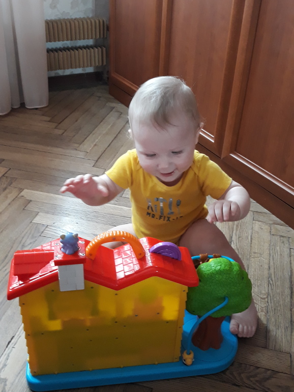 Отчёты по месяцамНу что сказать. 10 месяцев позади. И , начиная с 8 месяца и по сей день, мой милый подарочный малыш превратился в вездесущего шалуна. Осваивая навык ходьбы, прет как танк, куда можно и куда нельзя. Если раньше он мог сидеть и перебирать игрушки, то теперь фиг вам....Делать дела по дому очеееень проблематично.Чего-то нового особо не произошло. Также ходит вдоль опоры. Более уверенно ходит за одну руку.Его любимое развлечение, чтобы водили за ручку. Спасибо бабушке ..Может сам стоять секунд 5. Но рвения не проявляет.Не могу сказать со 100% уверенностью, но все чаще Гриша по делу употребляет слова : мама , баба и дай.Гриша любит катать машинки, сопровождая звуком "брррррр".Учу его катать мячик. Иногда получается.Прикорм ест активно. Скоро переведу на обычные супчики. А мне поесть вобще нереально. Лезет ко мне в тарелку, хочет все ))))Еще появилась проблема с сидением в стуле. Подруга мне отдала пег перегу, но без ремней. Раньше Гри хорошо сидел в стуле. Можно было спокойно поесть. И его покормить. Теперь же это треш. Выворачивается там и пытается выпасть из под столешницы. Ремней мне оч не хватает. Но я скоро планирую купить стул икеевский. А то у нас и места особо нет под этот переговский.В ванне так же продолжает стоять у крана. Или лезет на стены. Мытье 5 мин, моя спина не резиновая.Вт уже 3ий день проблема на прогулке. Не хочет сидеть в коляске . Я прям поражаюсь. На днях все было хорошо. Гуляла с двумя детьми спокойно. Теперь он сидит мин 20 и дальше ор и на ручки. Не , ну круто. У меня опыт со старшей в это вопросе капец какой....думаю, если так продолжится, то на сны не буду гулять. Вчера даже психанула примотала его в слинг. Так вот из милых кабачков вырастают энерджайзеры.