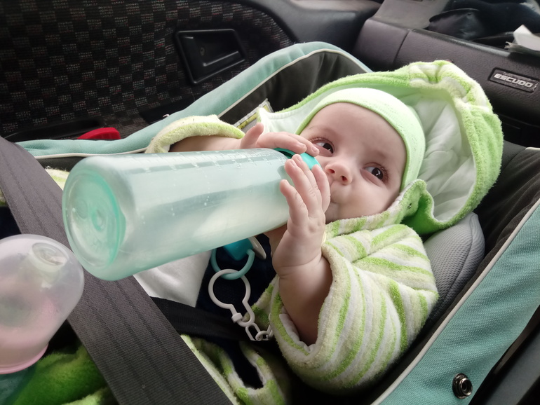 В 3.5 резко! стал больше есть. 180 по воде, это 210 смеси. Ест и ест. В прошлом месяце так же резко и с плохим сном переходил на 150, тогда же стал переворачиваться, так что и сейчас жду умелок (спойлер: так и случилось) Но зато стал сам держать бутылку. Полную - с опорой, полупустую совсем сам, за ручки. Особенно улыбает, как он в полусне ее держит, потом вытаскивает, чтобы внутрь попал воздух, и вставляет обратно в рот. Если совсем засыпает, то, отодвигая бутылку, еще и возмущается все полсекунды)) еще через неделю перестал много есть: 80-120 мл раз в 3.5 часа. Раньше за литр в сутки переваливало, сейчас около 700 мл. Иногда поест в 21 и до утра не берет даже во сне. Стал отличать воду от еды - у нас жарко, утром смесь плюет, воду пьет. Настроение пока в норме, наблюдаю, жду, что пройдет этот скачек с едой. Один раз за сутки съел 500 мл. В ночь уходил с жуткой истерикой, но еду не брал.. Не успокаивался ничем, уснул от бессилья, бедный. Во сне все же выпил смесь.