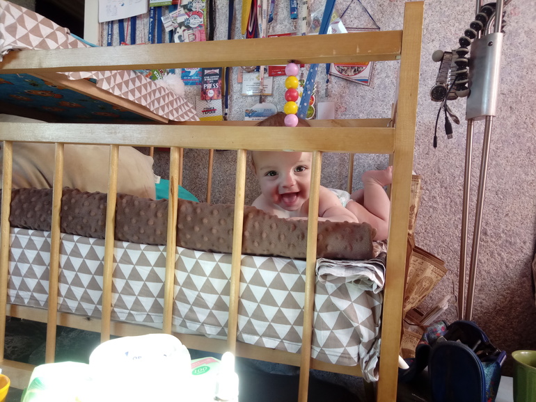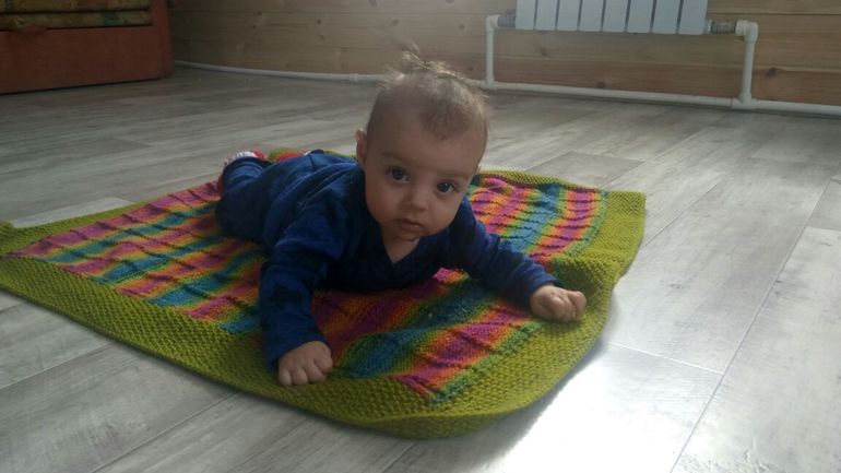 В 3.5 из позы на животе начал задирать попу, поднимать ее немного над ковриком. Была попытка прыгать лягушкой)) За одно движение "проползает" сантиметра три. Полуползком, полуперекатыванием преодолевал метра полтора за раз. Пятился около недели, поэтому уходя из комнаты его только на пол. Один раз положила, ушла помешать что то на кухне, из комнаты ор - пришла, а он в полутора метрах от того места где оставила, перевернулся и стукнулся. В итоге за три дня до 4 месяцев пополз, блин. К сегодняшней дате уже упорно ползет за игрухами и любовью - пылесом-роботом. Уверенно стоит на четвереньках. Ох, откуда эта рань.. Пока публиковала этот пост, яетыре раза оттаскивала его от комода - дополз, уперся головой и буксует))