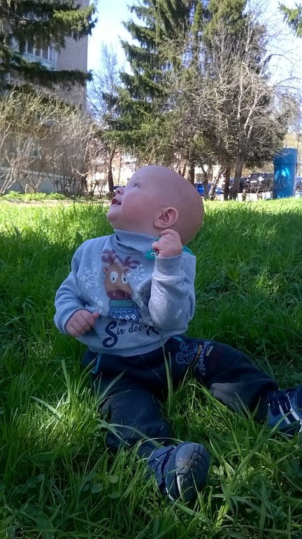 Отчёты по месяцамНу вот нам и девять. 9670, 75 см. Что нового?? Лето наступило и это очень радует. Гуляем много, всегда в бодрствование. Ходит возле лавочек, за ручки. Смотрит вокруг и радуется человек😊, всему, птичкам, собачкам, кисам, машинкам, деревьям, травке зеленой, которую еще и попробовать на вкус можно 😁. Солнце, жара, ветерок, все здорово короче. Самое главное,что наконец-то сел, за неделю до девяти. Намного легче стало и мне, и ему. Одеться можно теперь сидя, хотя бы верх, это очень круто😁, т.к. удержать лежа на спине давно уже нереально. Научился мотать головой из стороны в сторону, не знаю как еще это назвать, ну как бы нет-нет говорит и очень радуется, когда за ним повторяю или делаю также и прошу повторить, улыбка до ушей)). Даже и не знаю особо, что нового, что писать. Ест почти все, ну как, в пределах разумного конечно, мясо, молочку ввела, вот хочу уже фрикадельки сама делать, т.к. в виде пюре воспринимает только фрукты. Любит хлеб, кусает кусочками, давала оладьи тоже кусать, страшно конечно, а что делать, вроде справился. Показываю, как нужно жевать ам-ам, повторяет😊. Кусается сильно😒, все плечи и ляжки в синяках у меня. Пытаюсь отучать как могу, но боюсь своими громкими ой-ай напугать. Ну и немного фоток.
