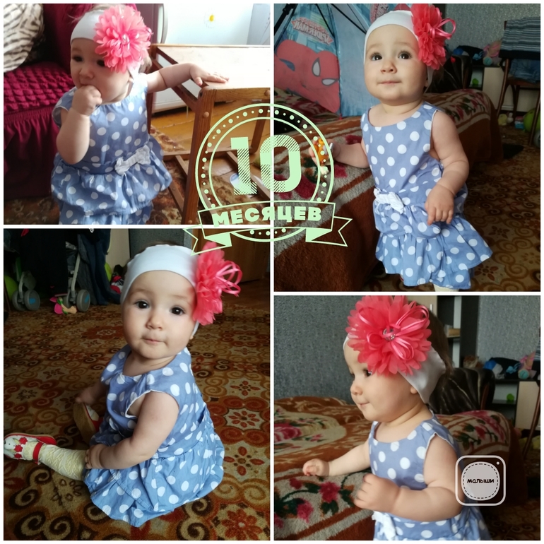 Единственное - у опоры ходить стала уверенней, практически летает) Ооооочень активная! Стоит без опоры, но идти боится, на попу плюхается!