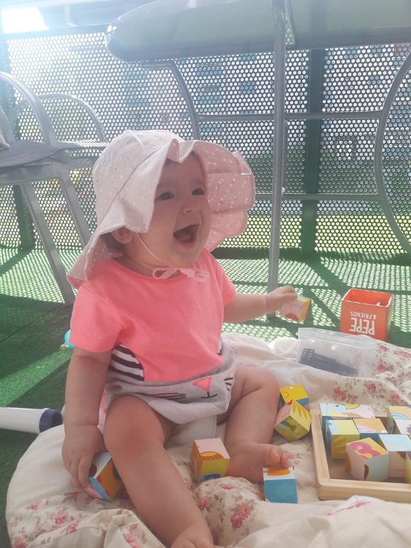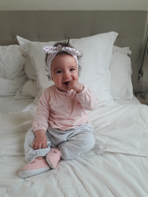 Вообще очень общительная девушка. Мы ездили два раза в соседний город ей паспорт оформлять и забирать, так что в поездке, что в консульстве Козюня была гвоздём программы, несмотря на присутствие других малышей. Её шилопопость всех удивляла, меня спрашивали: "она ВСЕГДА такая?" 😂😅