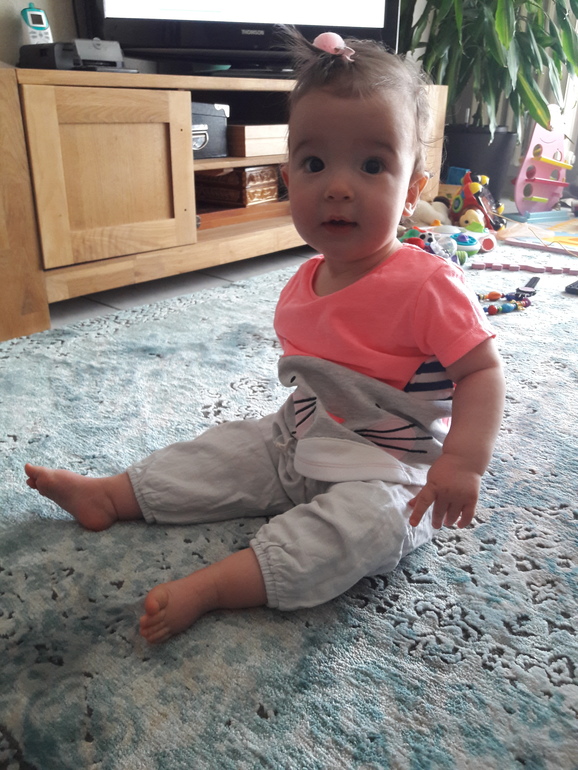 Сон: на твёрдую четвёрку. Встаёт в 6-6 30, ложится в 19.15, засыпает сама быстро. Днём два сна по часу или полтора, когда как. Четыре ночи колобродила, видимо, второй зуб лез, но так и не вылез, хотя просвечивает. В хорошие ночи просыпается пару раз - соску в зубы, и обратно спит.