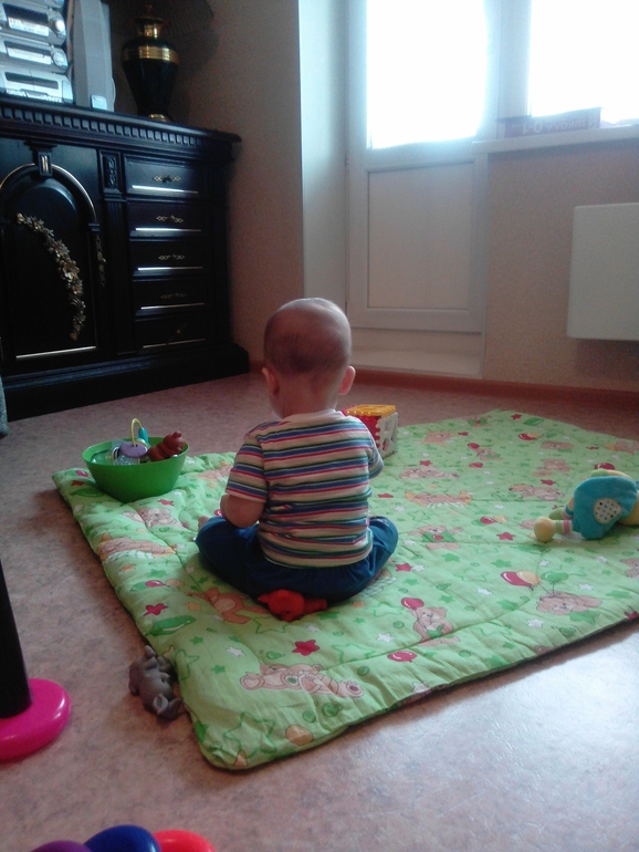 То сидит играет, то ползает по всей квартире и никакие мишки, зайки и пирамидки ему не нужны. Предпочтений в игрушках нет. Грызёт всё без разбора. Книжки в том числе. Кроме одной - большая картонная красочная книженция, в которой есть муха, жива до сих пор (купили в 3 месяца)! На кухне играет с пластиковыми чашками и старым венчиком.