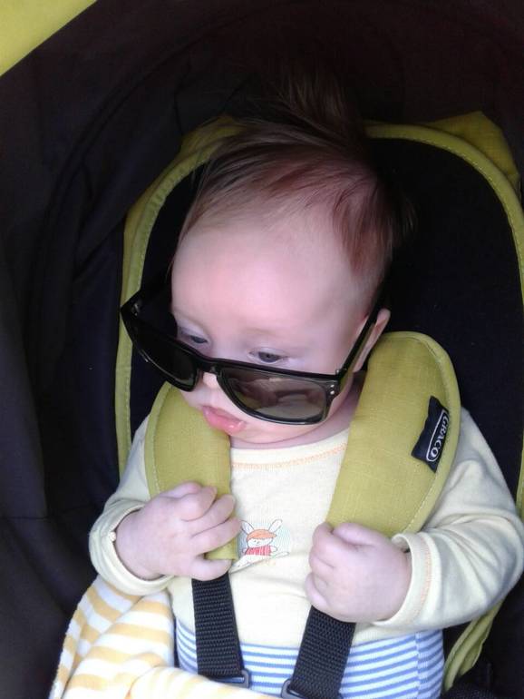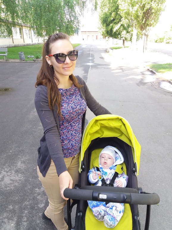 В коляске, кстати говоря, он уже не спит) Сидит занимается грызунком и разглядывает все вокруг, особенно нравится под деревьями))