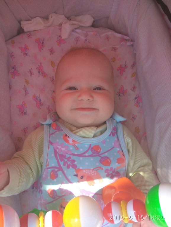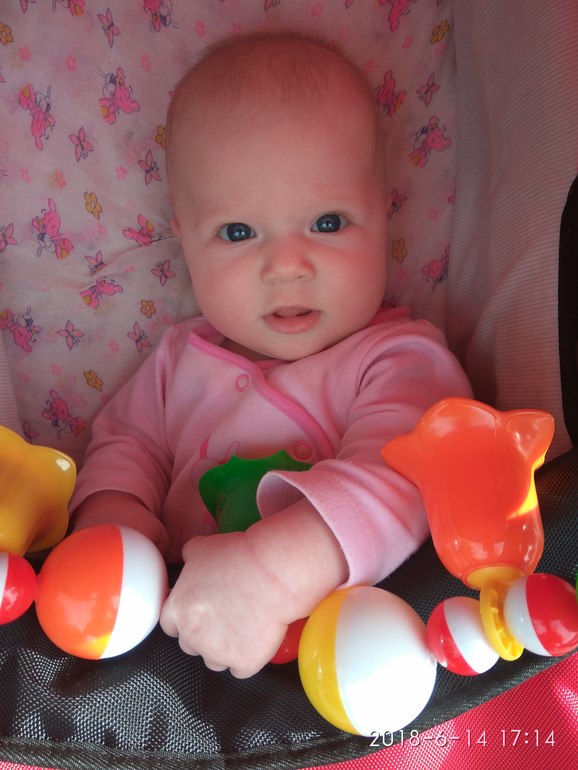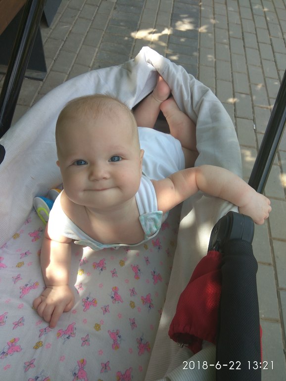 На прогулках ведёт себя идеально! Тьфу-тьфу-тьфу! Мы вообще забыли, что такое истерики. Погремухи это вещь!) Любаха с удовольствием их рассматривает и погремляет😁 И все прекрасно!) Если надоедает, то переворачивается на живот и смотрит по сторонам. Устает - засыпает. Замечательно, в общем!))