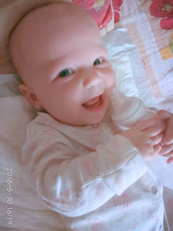 Кормить стало совсем просто. Бутылочку Буся почти всегда сама держит, расстраивается, если тару отбирают. Она должна сама удостовериться, что еда кончилась, и бросить бутылку с видом "можете забирать, я наелась"😊