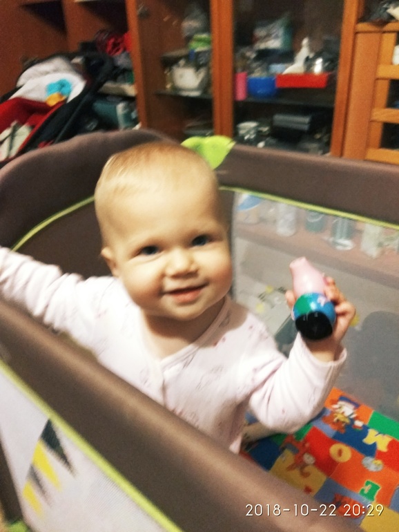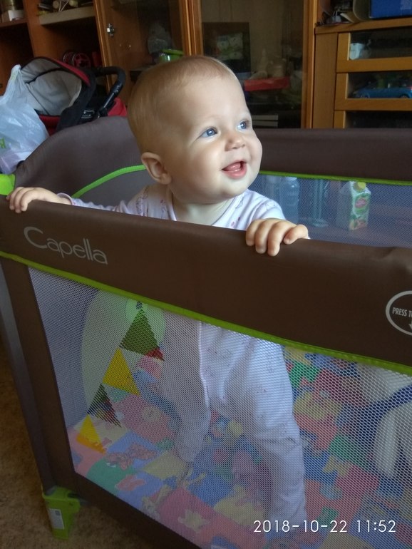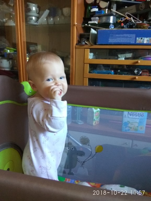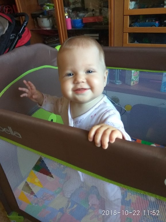 Почти все время играет в манеже. Времени у меня завались, чтобы дела поделать. И приготовить, и в душ сходить, и убраться. Любаха не возмущается, а занимается своими делами. Но и поиграть со мной никогда не отказывается. Ребенок не ручной, но потискать себя всегда с удовольствием разрешает)))) Так что по-прежнему я уверена, что к рукам нефиг приучать. Самостоятельный ребенок - это чудесно! И это не значит, что она не любит обнимашки. Любит и обнимашки и целовашки))))) Очень ласковая и добрая девочка😊 Я ее учу не быть жадиной, давать мне свои игрушки)))) Слово "дай" уже хорошо знает. Протягиваю руку, прошу игрушку, она посмотрит-посмотрит и кладет мне ее в руку))) И сама научилась просить. Например, я что-нибудь ем или пью, а она руку тянет и говорит: "Дай"😊 А вот я жадюга, не всегда даю ей то, что просит)) Хотя конечно не жадюга, а просто ей далеко не все можно давать. Вот и приходится вредничать. Еще у Любаши любимый прикол - мотать головой и говорить "Не надо"😀 Или просто "не". Мы ржем и придумываем всякие вопросы, на которые можно ответить "нет" и "не надо". Я люблю спрашивать, надо ли мне похудеть😂 Любаха утверждает, что нет, и я ем очередной бутер😎😁