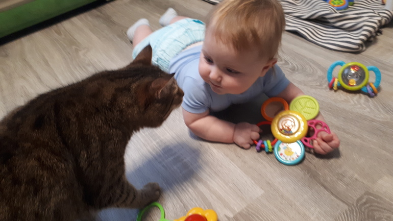 Это просто ужас, меня уже трясёт от этих звуков 😖 А Чеша вроде подуспокоилась, только если сын долго продолжает, то прибегает, но я на страже - все ОК. Бывает в обнимку лежат или вместе "зайчиков" рассматривают, а иногда мне кажется, что это она его охраняет 🤔