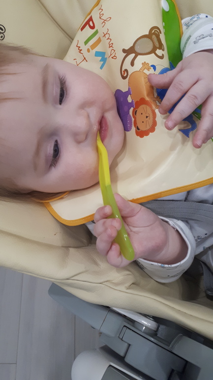 Чуть с меньшим аппетитом относится к груше🍐И еще меньшим к яблоку🍏 Уже успел попробовать кучу пюрешек: цветная капуста, брокколи, кабачок, морковь, тыква, груша - ничего не понравилось 😕 Не выплевывает, но лицо примерно такое 😐 Один раз ржал, пока я ему капусту предлагала, но на следующей день уже не было удовольствия. Еще гречку попробовал - она лучше всех зашла. Думаю, что лишь потому, что на моем молоке 🥛Наверно стоит отложить на недельку, побольше времени с ним за столом проводить, чтобы появился нормальный пищевой интерес.