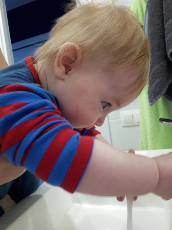 Игры 🎲 Появилась развлекалочка в ванной: нравится в раковине плескаться, когда умываю, или подплывать под открытый кран в ванной, когда теплой воды подливаю, и подставлять ноги или сам круг, чтобы брызги летели на лицо - так веселиться от этого😅