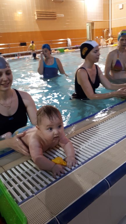 Бассейн 🏊🏻♂️ Продолжаем регулярно ходить. Настроение раз на раз не приходится, но чаще мелкому нравится, смеётся. Наконец-то начал собирать игрушки, раньше их игнорировать. Отдает, правда, не всегда и все. Может какую-нибудь облюбовать и изо рта не выпускать. Второй рукой при этом будет ловить другие игрушки, отдавать. Недавно научился меня обнимать в воде: обхватывает меня ногами за талию, руками берет за плечи и прижимается всей своей тушкой 😍 Тренировка тогда прошла мимо 😄 Обнимашки ему были интереснее упражнений там всяких, так и провисел на мне 🤗 Тренер, кстати, начала хвалить Льва - получается немного самому плыть 🐬