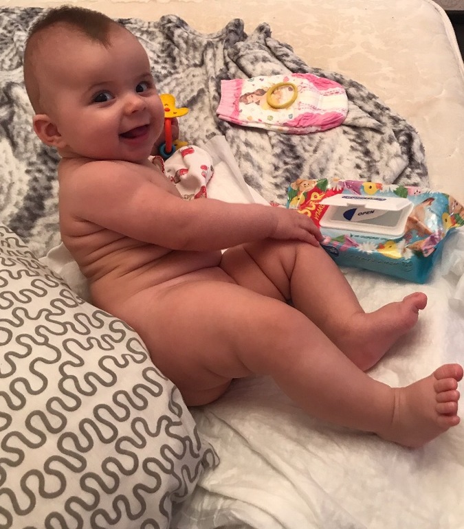 Понимает когда ее просят показать как она умеет раскачиваться на четвереньках и стучать ножками в шезлонге.