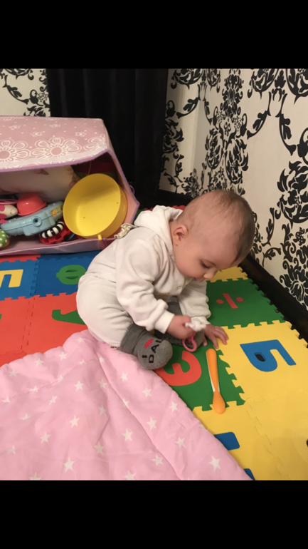 Отчёты по месяцамВсе никак руки не дойдут написать 🤦♀️ 18.01.19 Никуле исполнилось 7 месяцев! Вес 8650, рост 68 см )) У нас все ещё 2 зуба, но остальные на подходе и не дают нам жить спокойно 😤 Мы активно ползаем на четвереньках, я только успеваю ее ловить по квартире 😅 Мы сидим, пока иногда ещё заваливаемся на бок, но садится сама и пытается держать равновесие )) Пытается вставать у опоры, пока на коленки встаёт легко, а на ножки шатаясь и падая, но попытки не оставляет ✊️ С интересом разглядывает лица, танцует под музыку и что то пытается петь на своём тарабарском языке 😁😂 Целует в щёчку, а точнее присасывается ртом 😁 Кушаем 3 вида овощных пюре, 2 вида кашек с добавлением фруктового пюре. Спокойно стала гулять на улице ттт, обзавелись зимним китом на коляску и сегодня гуляли в нем, вообще отлично 👍 Вот такие у нас дела )) ну и фото