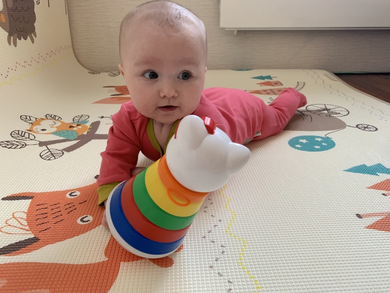 Сон по-прежднему 30 мин. дневной, в день 3-4 раза, иногда на прогулке могу укатать до 1,5-2 ч, но не всегда получается. Ночью просыпается каждые 2 ч., когда через 3- это праздник! Но есть ночи, когда и каждый час, во второй половине ночи. Встаёт в 7-8, спать около 21. Купила игрушку-комфортер для сна, кладу в кроватку, пока мало ее обнимает, больше сосет, приходится отбирать. Засыпает при укачивании, начинаю отучать от негативной ассоциации( участвую в сонном марафоне в Инстаграмм), стало немного получаться, может заснуть просто в руках или с маленькой амплитудой.