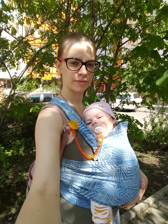 Так как к прогулке она часто просыпается, то гуляем бодрствующие. Ей нравится, она разглядывает улицу, чувствует солнышко и ветер. Иногда выходим с ней в слинге, но у меня пока спина быстро устает, так что нечасто. Бывает, привяжу ее в слинг дома. Так она довольно быстро засыпает (но просыпается, стоит ее оттуда вынуть).