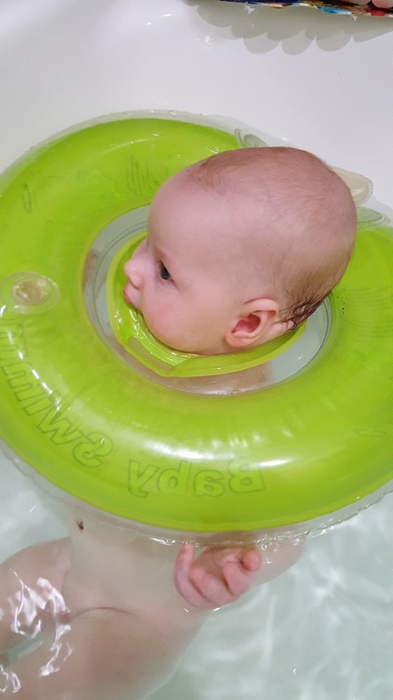 Хулиганит в ванне. Подпрыгивает и плюхается в воду, чтобы голова провалилась в круге, и быстрей воду пьет)) или сам круг облизывает, я не поняла до конца. Купать в круге баке невозможно, попробуем еще один круг, надеюсь, там голова не будет проваливаться. А если купать ее без круга, руками голову держать, то она изгибается так, чтобы воду пить, и вертится сильно - очень сложно ее не уронить в воду.