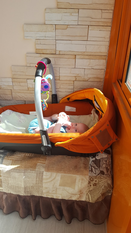 Легко может полежать в шезлонге, детском стульчике или просто на полу. Играет с игрушками, сама рукой пока взять не может, но пытается, а если вложить в руку, то держит хорошо. Поесть и попить чай с ней бодрствующей вообще не проблема, и нередко бывает, что она лежит дрыгается на полу, а я могу целый час почти готовить, лишь иногда подходя к ней, чтобы улыбнуться, потискать и поагукать.