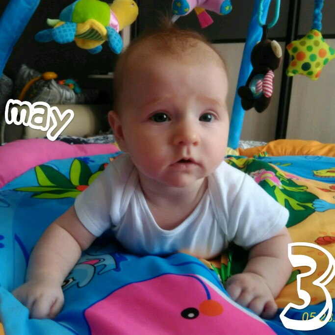 Отчёты по месяцамВасилиса начинает все больше времени проводить лежа на животике и ей это нравится! Уверенно держит голову, даже пытается выпрямить руки в локтях и ползти! Моя старательная девочка. В плане агукалок мы не продвинулись дальше, диапазон все тот же, разве что интонаций теперь гораздо больше. Говорит мало и по делу, не болтунья. Пыталась смеяться в голос, когда я говорила ей: "кур-кур-кур-кур"., но потом перестала, видимо уже не смешно)).