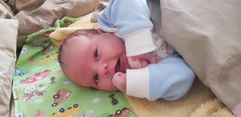 Что мы имеем вес 5200,Рост 62см,Голова 39 см.Сынок начал гулить и издавать всякие смешные звуки,о это так мило.И улыбаться-это вообще мой кайф!Подходишь утром к его кроватке,он видет тебя и улыбается,красооотааа!