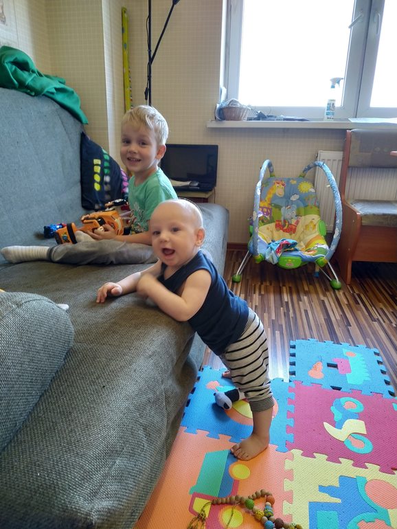 Сашу в садик не водим с начала лета, так что хлопот и бытовухи мне прибавилось) Но Саша один не доставляет никаких проблем, а вот когда они вместе с Женей, то голова идет кругом. Еще на улице Женю будит любой шум. Спит по чуть-чуть. Пока он спит, я превращаюсь в психичку, сторожившую гнездо с младенцем. Иногда мне кажется, что я готова убить того, кто крикнет рядом с коляской))) если проснулся, то ношу, развлекаю и мечтаю о времени, когда он пойдет)))