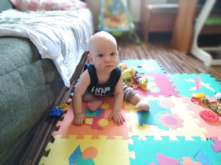 7 месяцев. Экватор пройден. Встал на четвереньки и на ноги.