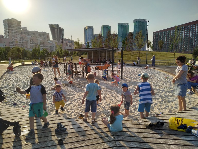 Две недели месяца мы провели в Москве. Жили в отеле в обычном номере стандарт вчетвером. Правда муж был на работе весь день. А так, это еще то удовольствие!) Места мало, ползать почти негде, хотя там был везде ковролин, его пылесосили. Саше поставили кроватку, Женя спал с нами. Мы вставали в 7 утра и шли на завтрак. Конечно, так рано есть не хочется вообще, и я могла бы сходить позже, но мне пришлось бы тащиться одной с двумя детками, а так с мужем хоть какая-то взаимопомощь. В 9 шли гулять в Петровский Парк, там Женя спал. К 11 возвращались и в час был отбой на тихий час. Детки мои чет в Москве дрыхли днем подолгу, иногда аж до 5 вечера. Это было мое время для английского, ютьюба, книг и прочих радостей. К шести мы выходили гулять, ждать папу с работы. Ну и вечером шли кушать куда-нибудь, пару раз отдыхали в парке Ходынское поле. Это просто обалденный парк!