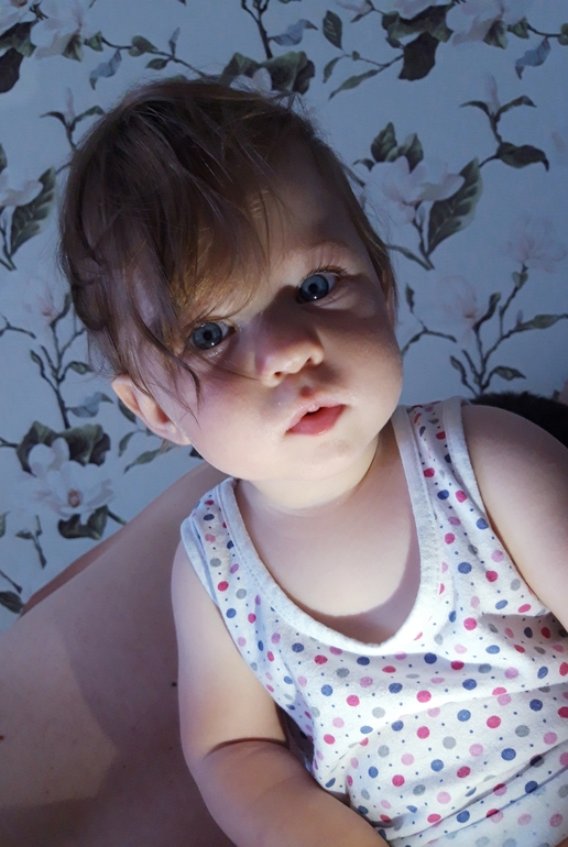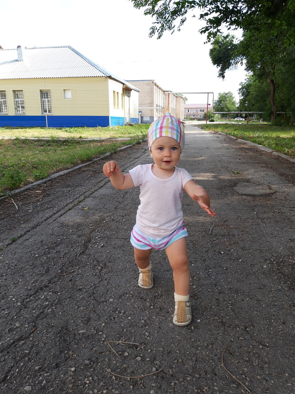 За этот месяц не прибавили ни в росте, ни в весе, также 9500 и 74. Ну эт понятно, мы ж бегаем, и не только дома, но и на улице, в коляске может минут 15 посидеть, потом ей надо ходить, много ходить. Ходит сама без ручки