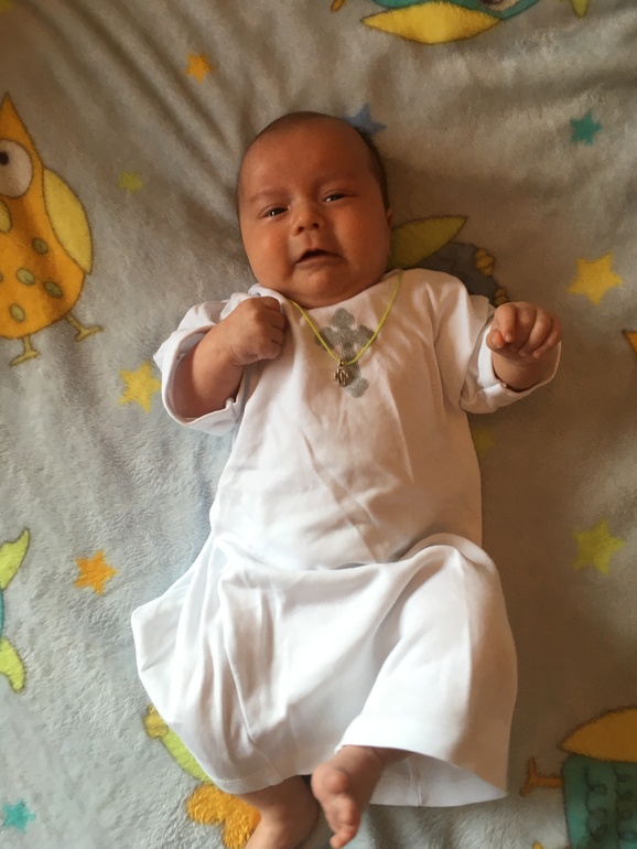 Сынок великолепно себя вел на крестинах - лишь пару раз пискнул и все.