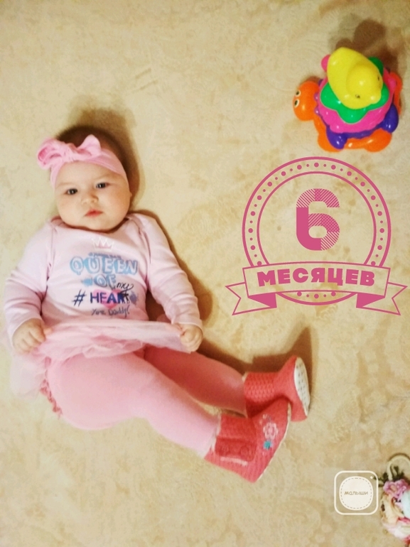 Полгода очень важная веха в жизни малыша, я все думала что будет полегче, но пока как-то не очень. Моторное развитие у нас идет оооочень неспешно в отличие от физического. Умелок никаких не прибавилось практически, кроме как уверенное стояние на выпрямленных руках 🙄😥 И ещё пару раз перевернулась с живота на спину. Я уже начала беспокоиться что не так с ребенком, сделали уже 2 курса массажа - толку ноль, на четвереньках не стоит, не ползает... 😵😖