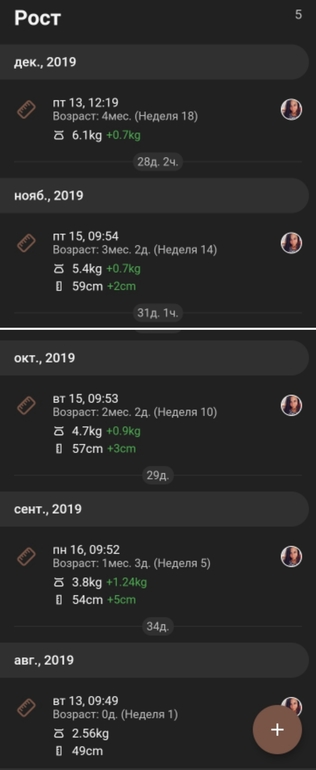 ввела все данные, отслеживаю сколько раз и сколько по времени кормлю и сколько спит, а там ещё много чего можно отслеживать, мне просто пока не нужно) только показывает не правильно количество снов, если например нажала старт на ночной с 9 вечера, то после 12 ночи посчитает как ещё один сон, но это не столь важно)) мне нравится)