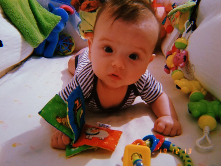Пока на живот не переворачивается, ленится) только на бочки) не особо любит долго лежать на животе, но терпит 😊 Делаем массаж, так, как есть небольшой тонус. Было подозрение на дисплазию сустава, но поход на узд нас успокоил, все в порядке)