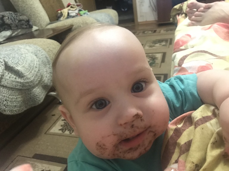 Недавно Глеб угостил братика печенькой орио. Я не видела, а муж проигнорил это, ему тоже лишь бы что-то запихнуть в мелкого. Диатеза не вылезло, но вот руками своими испачкал нам всю постель 😭.