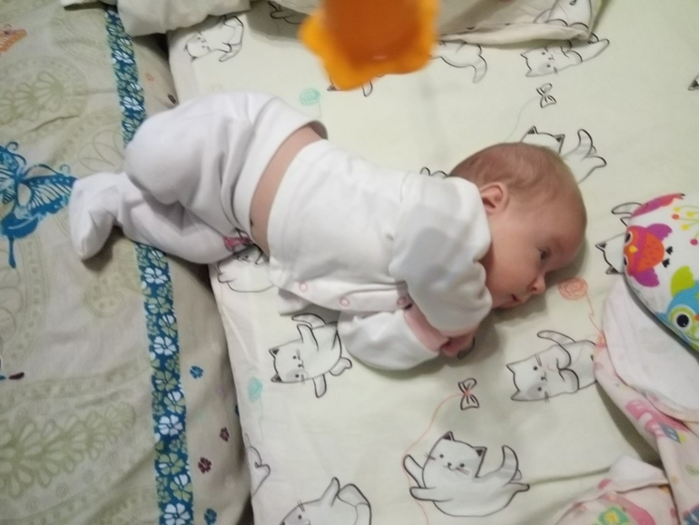 У мамы кончается спина и руки, поэтому привыкаем к самостоятельности. Бессонница, засыпаю по 2-4 часа, а малышка хорошо ночь спит.