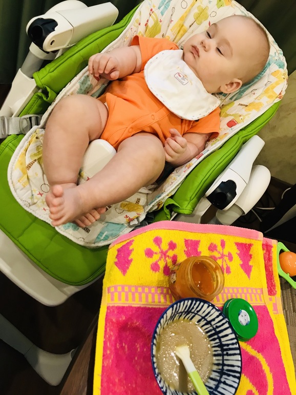 Прикорм: двигаемся по схеме - пробовать все и разнообразное. Кашу любит гречневую и рисовую. Любимое пюре морковное и яблочно-тыквенное.