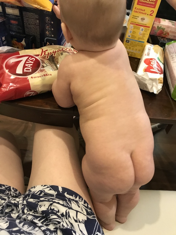 В первые же дни пятого месяца освоил перевороты с живота на спину. До цели добирается перекатами. Может подтянуть себя на руках пару сантиметров до цели. В арсенале также лодочка и планка, а ещё поза йоги «жопа кверху». На полу изображает немощного кабачка, зато на кроватях и диванах ползает, встаёт на четвереньки и всячески катается как кот. На руках встаёт, опираясь о нас, и радостно стоит солдатиком. Больше нигде такого не исполняет.