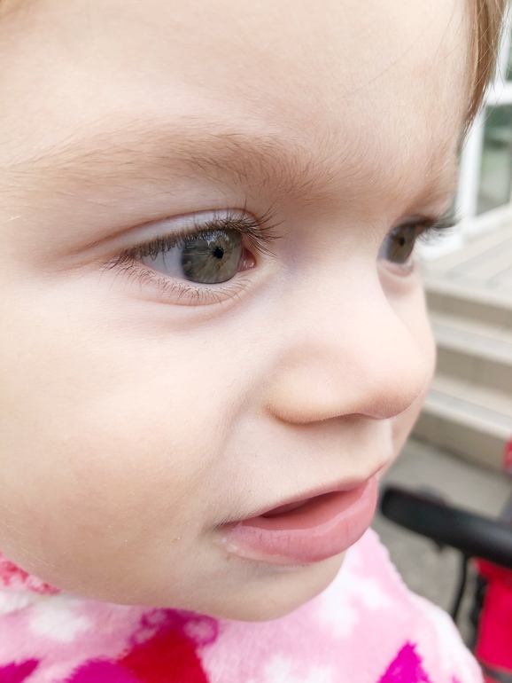 У младшей тоже что-то такое непонятное, я никак не пойму, то ли болотного какого-то цвета, то ли серые, но мне кажется, будут светло-карие. Мне очень хотелось в первую беременность, чтобы были голубые, и у старшей голубые (ну, вроде зафиксировались)), а сейчас я смотрю, и прям симпатично у младшей смотрятся тёмные)