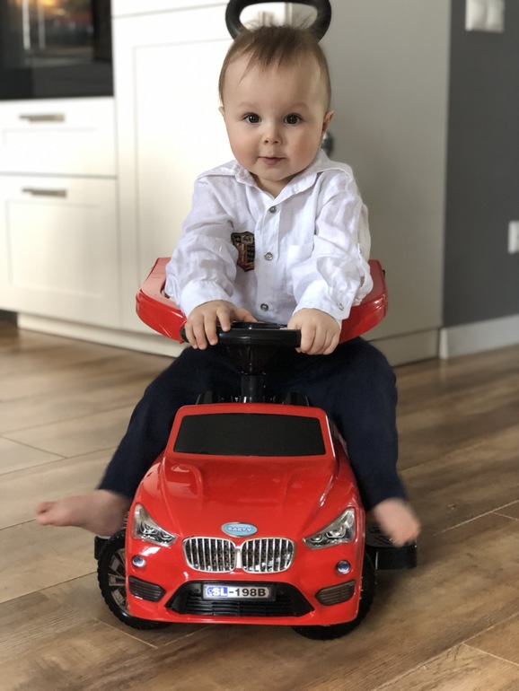 Научился мастерски слезать с дивана и нашей высокой кровати и делает это по моей просьбе. Правда, затем ползет вообще не туда, куда я планировала его ползти. В основном, к своей роботизированной любви - пылесосихе Сяме. Полчаса включает-выключает и слушает милое женское 'Starting to clean…Paused…Charging», пока у меня не заканчивается терпение.