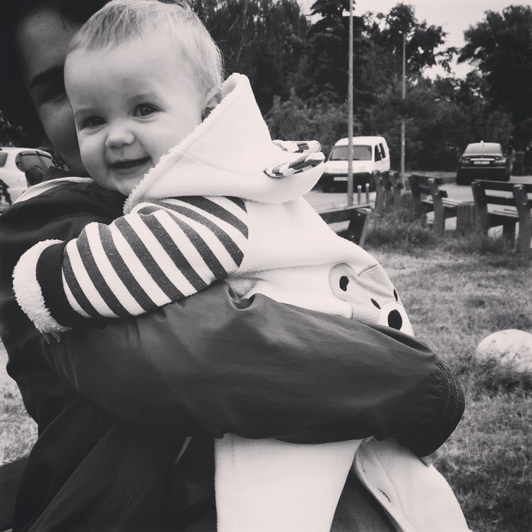 Катя вовсю ходит вдоль опоры, уже делает топ-топ вперёд, держась за руки, присидает на корточки и встаёт без опоры очень уверенно! Стойка уже выровнялась, без наклонов туда сюда, а вчера даже пыталась сама сделать шаг, но вышло только немного оторвать ногу от пола 😁