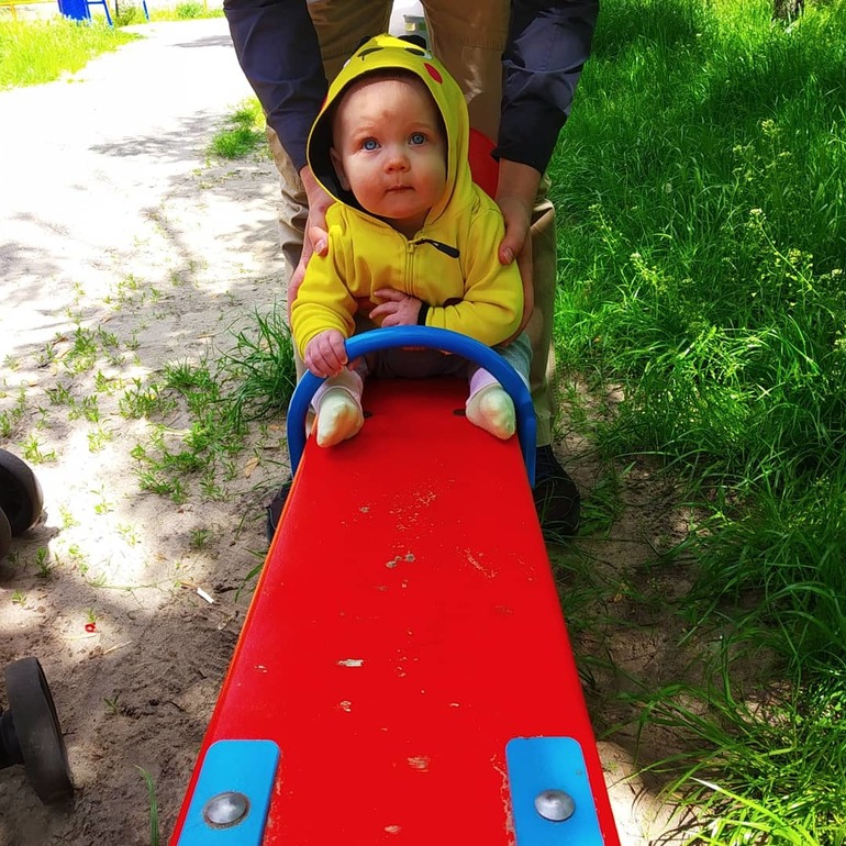 Катались на качельке недавно, особого восторга не было, но думаю, что ещё все впереди!