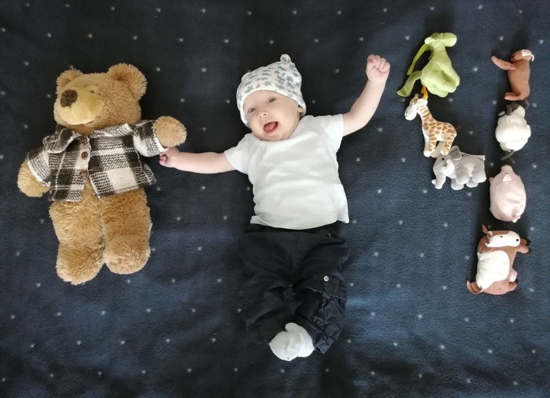 Рост 63 см, вес не знаю, недавно вернулись из деревни, поликлиника не работает. Сравнивая со старшим, Ваня немного пониже. Зато шустрее! В 4 месяца 4 дня перевернулся на живот через левый бок, третий день тренируется, но не очень активно. Крутится по кругу когда лежит на животе, поднимает попу и пытается встать на колени, стал пробовать выпрямлять ручки, 1 раз пытался качать пресс. В общем всего по чуть-чуть)))