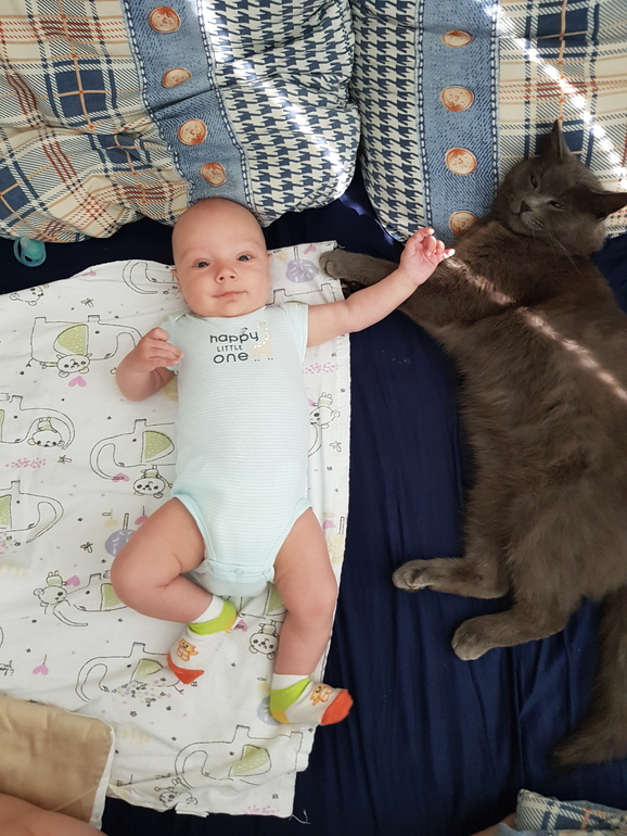 Про 2 месяца руки так и не дошли написать, все некогда было. Пошла дистанционная учеба в универе, совмещать капец как трудно, но возможно. Пролетел у нас тот месяц в режиме "на животе". Так и спали и от коликов спасались и гуляли.