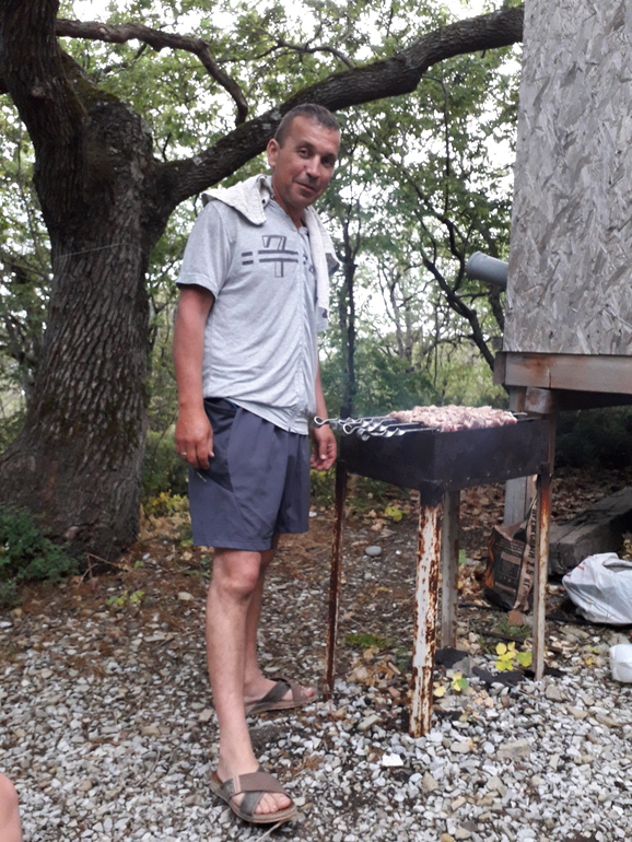 Папа готовил нам на мангале шикарный шашлык и пловчик!!! Лёхе давали смесь и кашу.