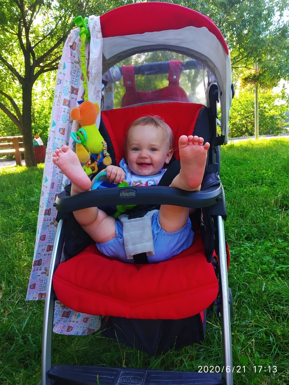 Выходы на природу с компанией просто обожает! Настилаем кучу покрывал и ребенок себе резвится, столько внимания, все вокруг нашей малышки!