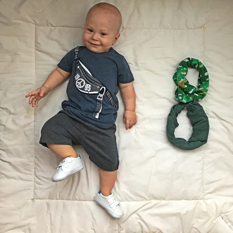 А вот пару дней стал пару метров проползать на четвереньках! Четвереньки, родименькие, как я вас ждала!) Пока на ламинате скользко и все же елозить пузом проще )