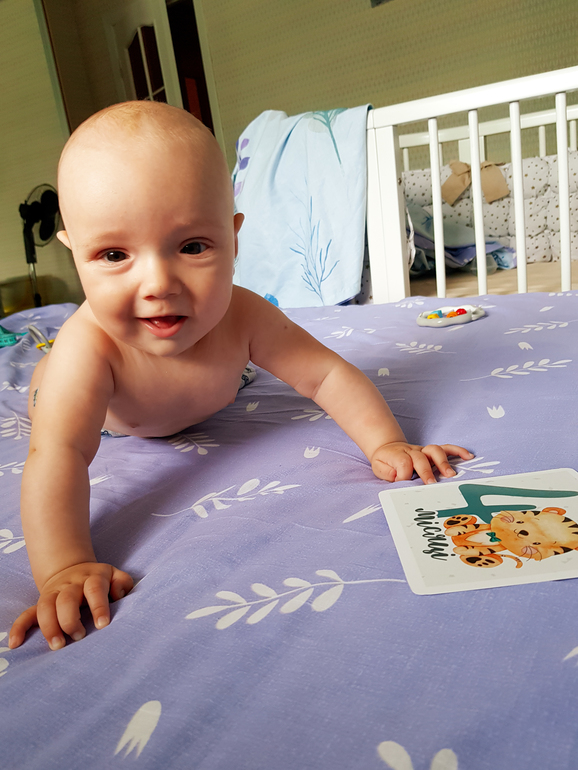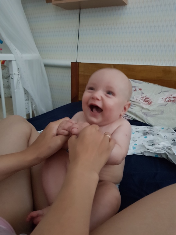 К сожалению этот месяц начался у нас не очень хорошо (для меня так точно😁). Виталик совершенно перестал сам нормально засыпать. Пришлось прибегнуть к запрещённым методам (укачиваниям😄), иначе сна не было ни у меня, ни у него. Я стала следить за ВБ, ловить "окно сна" и было нам немного легче. Благодаря этому нарисовался хоть какой-то режим, но сон у нас совместный (дневной). Пол ночи спит отдельно, потом забираю с кроватки на кормление и спим до утра вместе.