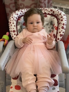 Очень улыбчивая. Болтает много, выкрикивает «а а а», « гу», « ма». Очень любит маленьких детей, когда видит заливается смехом от удовольствия😊.