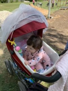 Сегодня пересели в прогулку, ей очень понравилось. Даже поспала в коляске.
