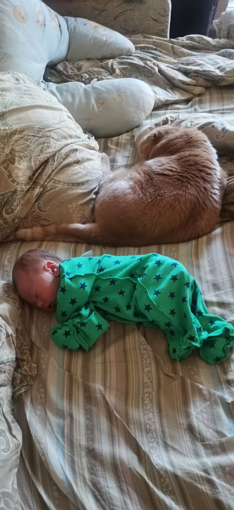 elizavetasacks, это был единичный случай, обычно малыш лежит в кокон, просто тут кормила и не успела переложить, а кот уже тут как тут)
